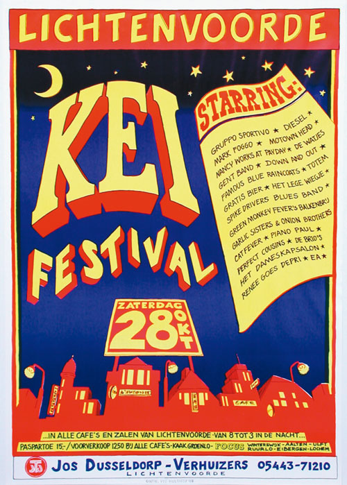 GRUPPO SPORTIVO, DIESEL, MARK FOGGO, MOTOWN HEAD, NANCY WORKS ON PAYDAY, DE WATJES, GENT BAND, DOWN AND OUT, FAMOUS BLUE RAINCOATS, TOTEM, GRATIS BIER, HET LEGE WIEGJE, SPIKE DRIVERS BLUES BAND, GREEN MONKEYS FEVER, GARLIC SISTERS & ONION BROTHERS, CATFEVER, PIANO PAUL, PERFECT COUSINS, DE BRIO’S, HET DAMESKAPSALON, RENEE GOES DEPRI