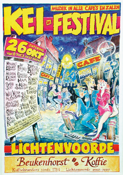 THE CHARLIES, LE ROI, WIL DE WEL, ZWOELIE TROELIES, THE SERENES, JACK OF HEARTS, THE HAMSTERS, KAZ LUX, BRIGHT BLUE GORILLA, COMSAT ANGELS, POWERPLAY, VICIOUS VELVET, STRINX, LEFT HAND FREDDY & THEALES, TOTAL TOUCH, ANN’S MEN