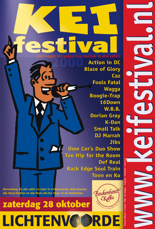 THE SCENE, SJAKO!, JULYA LO’KO BAND, JOVINK EN DE VOEDERBIETELS, APPARATSCHIK, DE BENGELS, THE LASSO’S, THE PO’BOYS, BIG SECRET, THE BOB COLOR BAND, NANCY WORKS ON PAYDAY, ARTHUR EBELING & CO, MOTOWN HEAD, HAPPY TUNES, FIFI L’AMOUR, SQUARE CATS