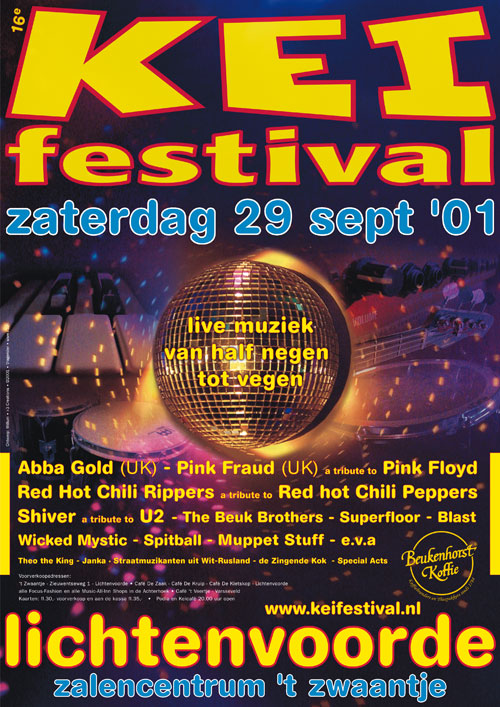 SHIVER, MURK, MIMEZINE, ABBA GOLD, CAFEBAR 401, COMBO DI CONJO, O.D. BABE, TAFEL VAN 11, STAIRWAY TO ZEPPELIN, BOGUS BROTHERS, YSIS, BENDOVER, GET A GRIP, SEANPENN, DJ SLICK, FLAGEOLETTES
