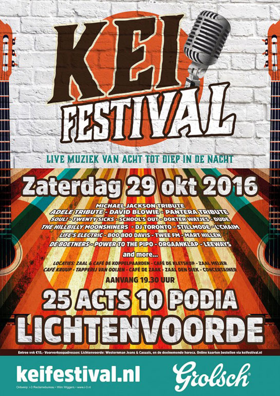 DAVID BLOWIE, SOUL!, TWENTY SICKS, ADELE TRIBUTE, MICHAEL JACKSON TRIBUTE, SCHOOL’S OUT, DOKTER WATJES, DUDE, DJ TORONTO, THE HILLBILLY MOONSHINERS, DE BOETNERS, STILLMODE, ORGAANKLAP, POWER TO THE PIPO, LIFE’S ELECTRIC, BOO BOO DAVIS (USA), THE ART OF PANTERA, L’CHAIM, LEEWAYS, TWEE FM, MART HILLEN.